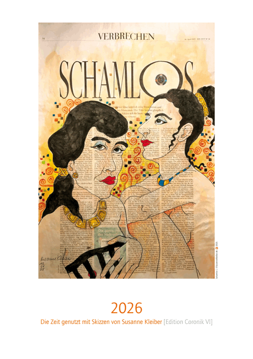 Vom 4. bis 17. Oktober bin ich wieder an meinem beliebten Ausstellungsort Die Bedürfnisanstalt, wo ich neue Arbeiten auf ganzer Zeitungsseite und den neuen Kalender 2026 präsentiere. Natürlich habe ich noch viel mehr Arbeiten dabei, die endlich mal im Original gezeigt werden. Auch meine Skizzenbücher werde ich dabei haben, aus denen ich einzelne Arbeiten heraustrennen kann.