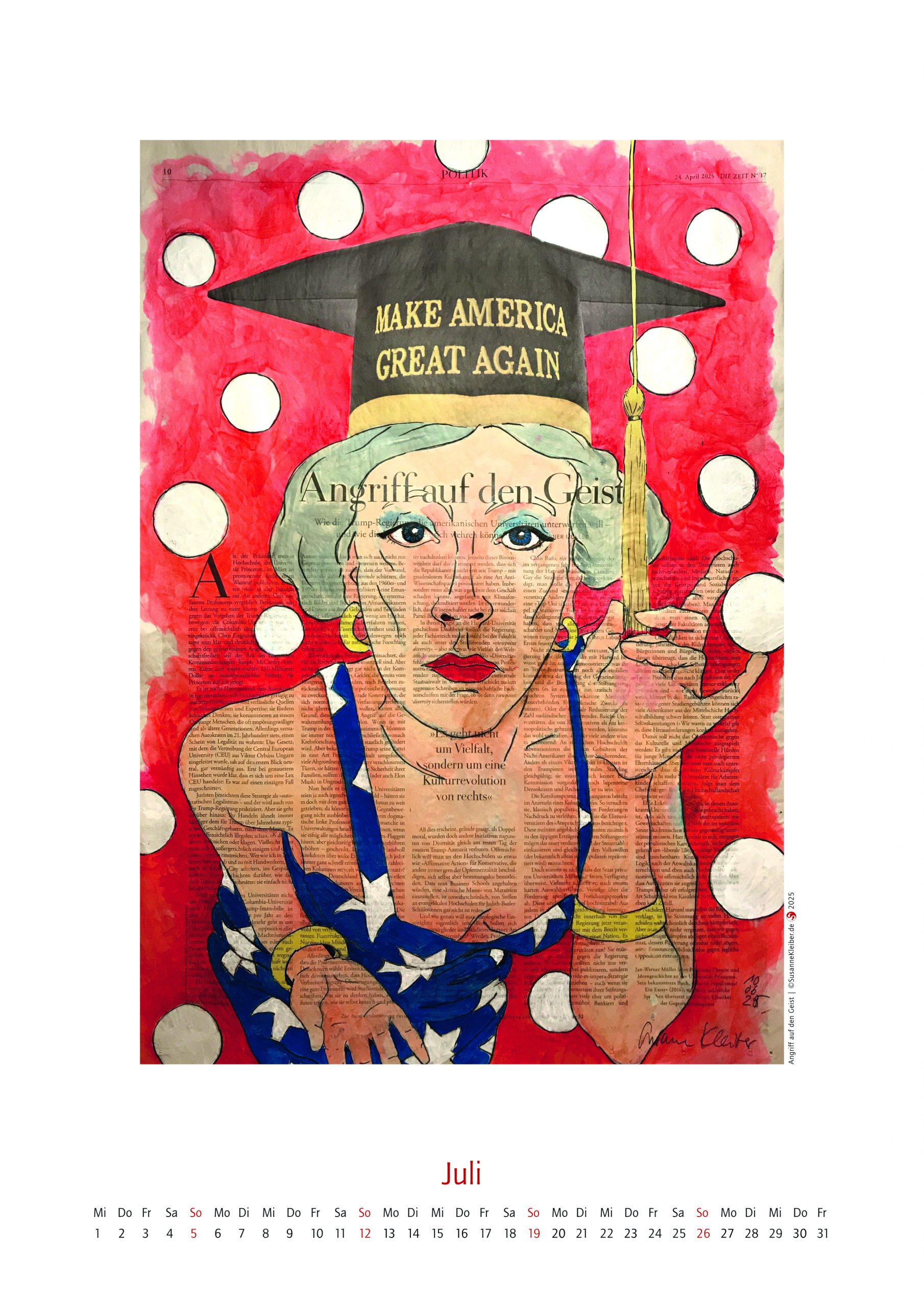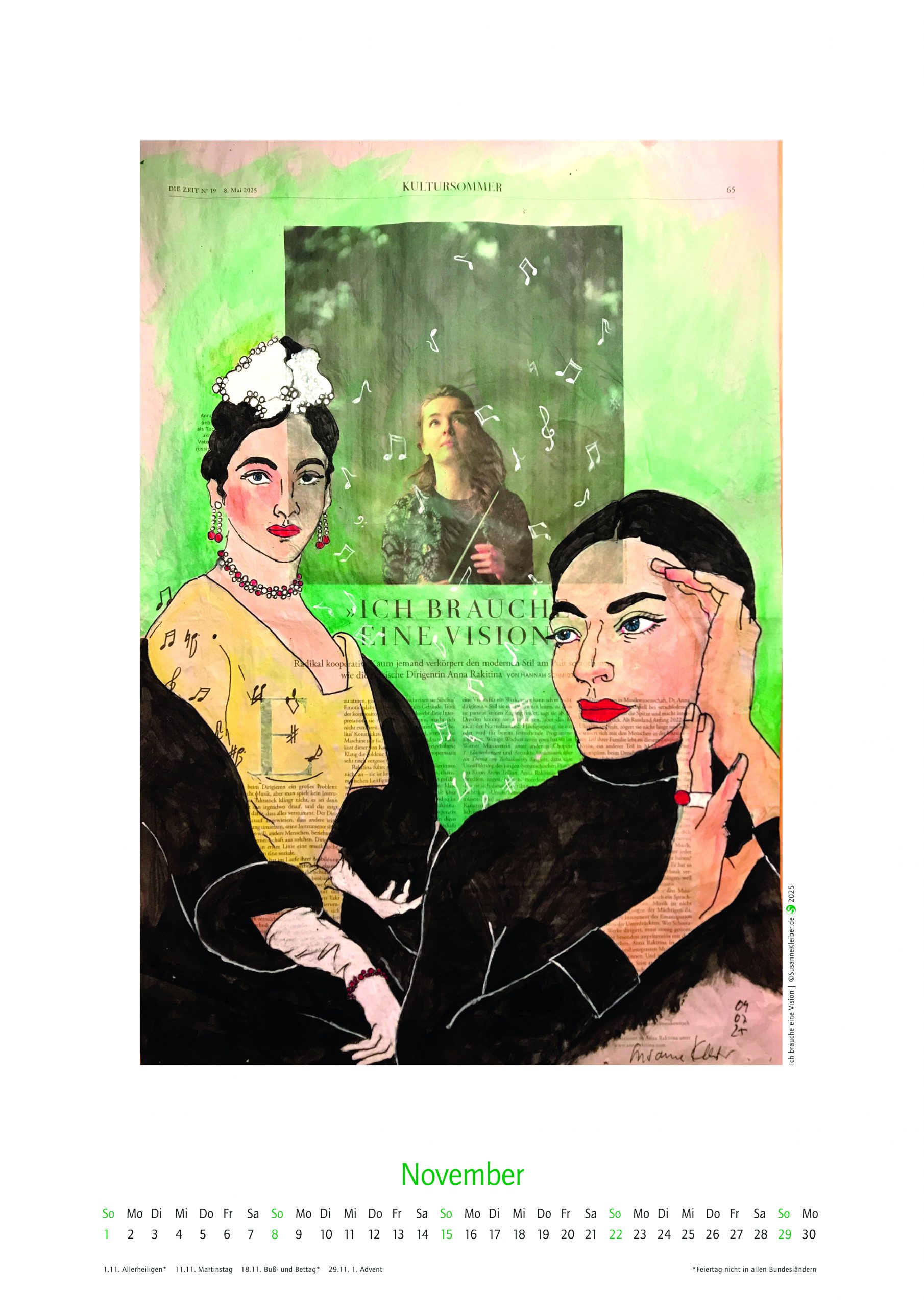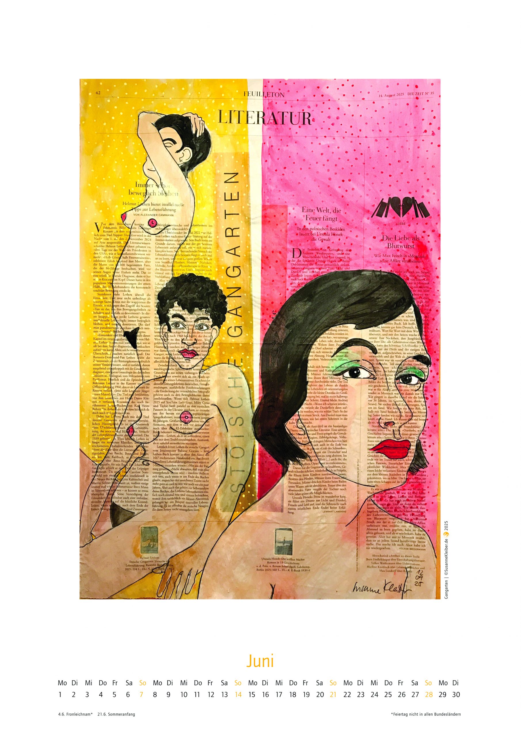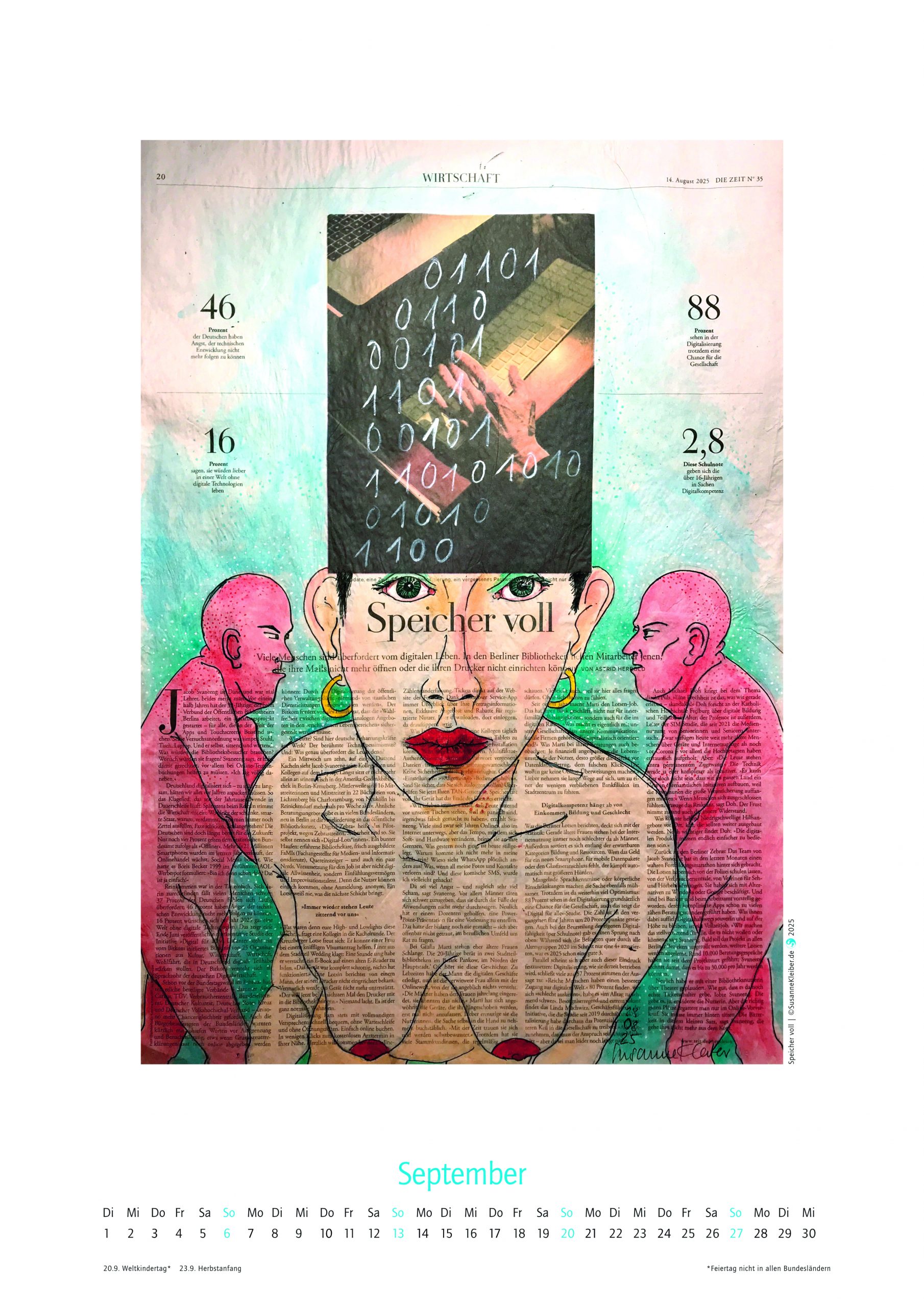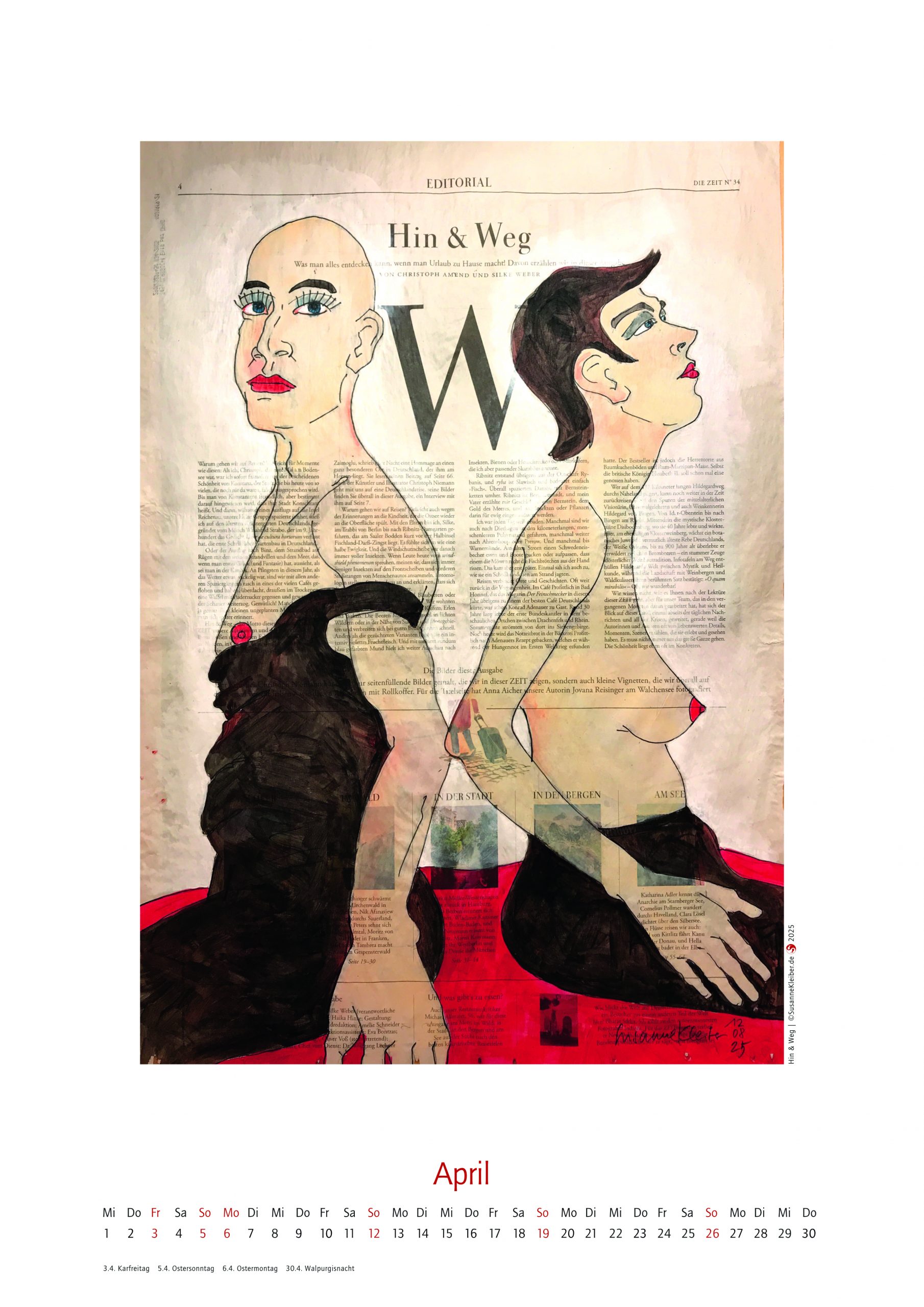 Der Wandkalender (Edition Coronik VI). Er ist wie auch die Jahre zuvor im DIN A3-Format mit Wire-O-Bindung und enthält inklusive Titelbild 13 Motive von figürlicher Zeichnungen auf ganzer Zeitungsseite (Die ZEIT). Erhältlich ist der Kalender in meinem SumUp-Store.