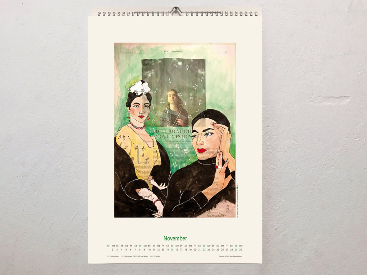 Kalenderbild November mit figürlicher Illustration auf ganzer Zeitungsseite
